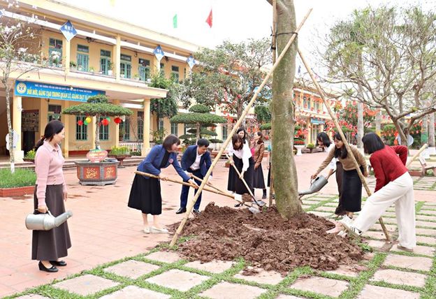 Trong khuôn khổ chương trình, các đồng chí lãnh đạo cùng Ban giám hiệu nhà trường đã tham gia trồng cây lưu niệm trong khuôn viên trường. Hoạt động không chỉ góp phần xây dựng cảnh quan xanh – sạch – đẹp mà còn mang ý nghĩa khởi đầu cho một năm mới phát triển, bền vững và tràn đầy hi vọng.