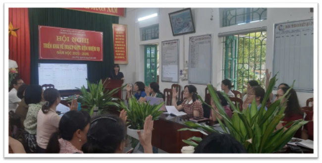 Hội nghị triển khai kế hoạch năm học 2025 – 2026 đã diễn ra trong không khí nghiêm túc, dân chủ, trách nhiệm, đồng thời cũng lan tỏa tinh thần lạc quan, quyết tâm đổi mới, sáng tạo. Với sự thống nhất trong nhận thức và hành động, tập thể cán bộ, giáo viên, nhân viên Trường Tiểu học Bình Hòa quyết tâm phấn đấu thực hiện thắng lợi nhiệm vụ năm học, góp phần nâng cao chất lượng giáo dục, đáp ứng yêu cầu đổi mới căn bản, toàn diện giáo dục và đào tạo trong giai đoạn hiện nay.